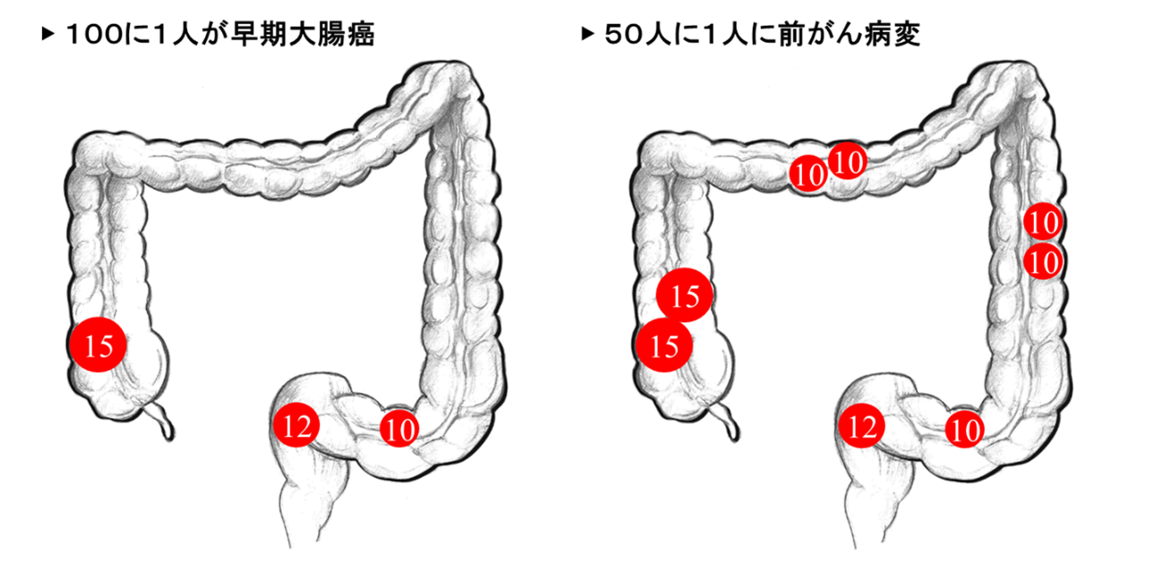 「0.8%」や「2.2%」という数字は一見すると低く感じるかもしれませんが、これは100人に1人に早期大腸がん、50人に1人にがん化リスクの高いポリープ(高リスクポリープ)があることを示しています。これらは症状がない段階で発見され、内視鏡で切除できた病変です。放置すれば進行する可能性があるため、1回でも陽性が出たら、軽く考えずに必ず内視鏡検査を受けてください。
