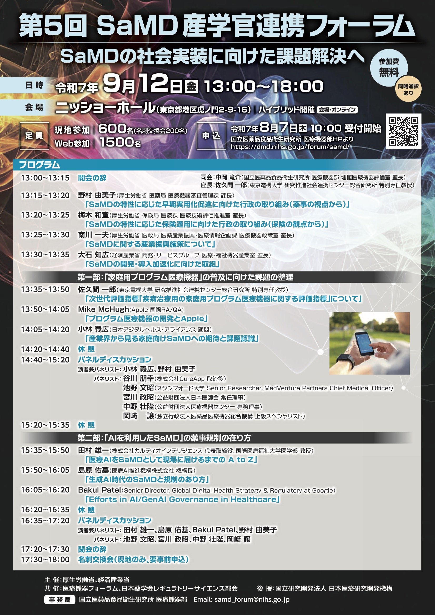 「第5回SaMD産学官連携フォーラム(2025年9月12日開催)
