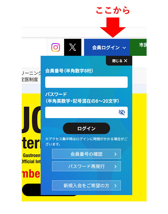評議員会のWEB参加・視聴には、本学会ホームページから会員ログイン(※)が必要ですので、まだログインをされたことがない会員の皆様におかれましては、事前にログインをお試しいただけますようお願い申し上げます。