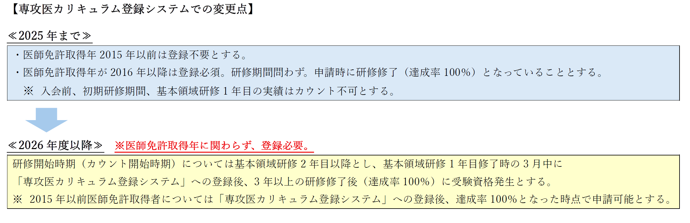 (※ 2015年以前医師免許取得者で2026年度以降に専門医申請をされる方は登録が必要です。)